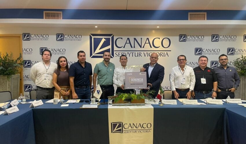 [ssba]Ciudad Victoria, Tamaulipas, a 28 de octubre de 2025.- El día de ayer el Fiscal Especializado Jesús Eduardo Govea Orozco sostuvo un conversatorio en las instalaciones de CANACO VICTORIA, acompañado por el Presidente del Consejo Directivo y los empresarios que integran dicha organización empresarial.